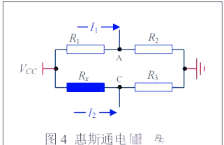 在图4中,我们可以观察到,当夹角α等于90°时,磁阻元件的电阻R达到最小值;而当夹角α为180°或0°时,其电阻R则达到最大值。通常,磁阻元件会与电桥电路相连以进行信号处理,例如惠斯通电桥。在电桥电路中,磁阻元件作为Rx,其阻值的变化会导致R1和R3两端的电压差ΔV发生变化。通过测量和利用这个电压差ΔV,我们可以实现对磁阻元件阻值变化率的放大。