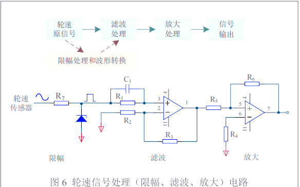 在采集到轮速信号后,必须进行一系列的信号处理,包括限幅和滤波等操作,以确保汽车ECU能够接收到稳定且有效的轮速信息。